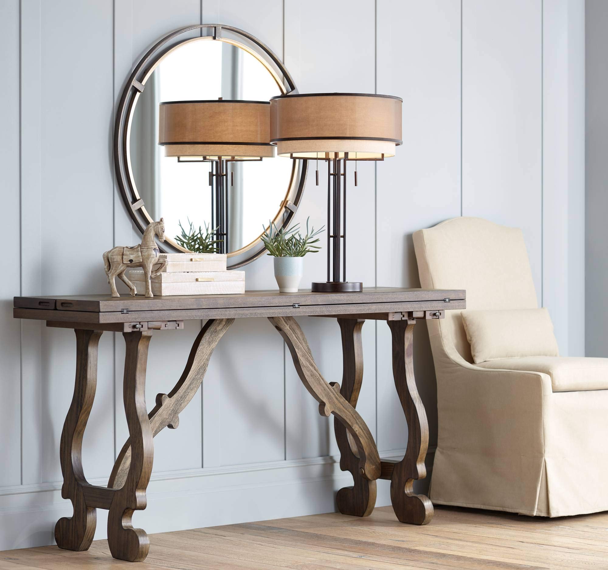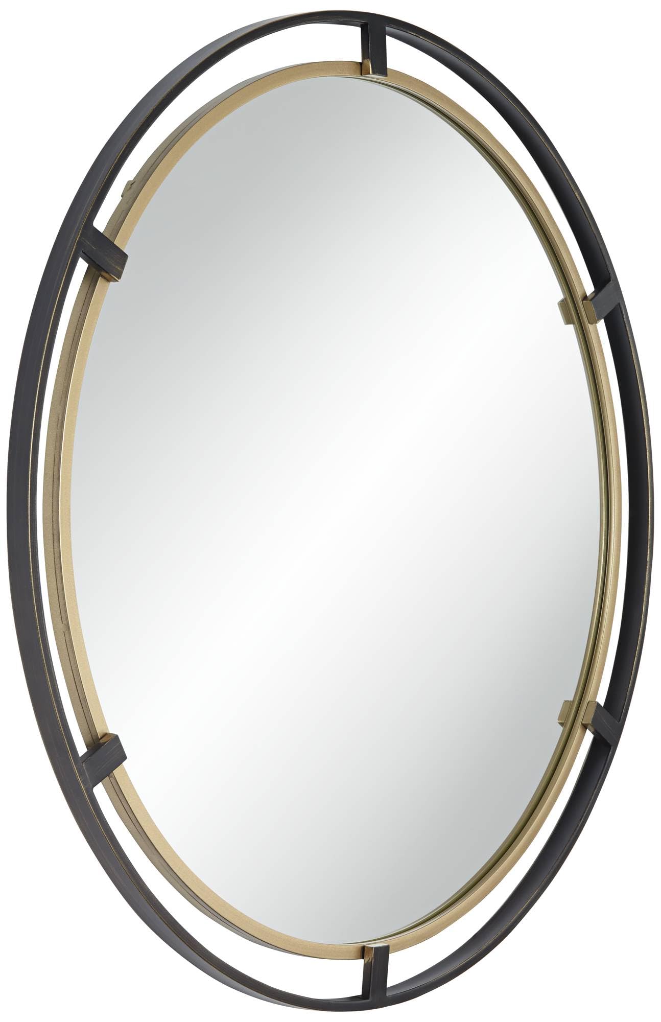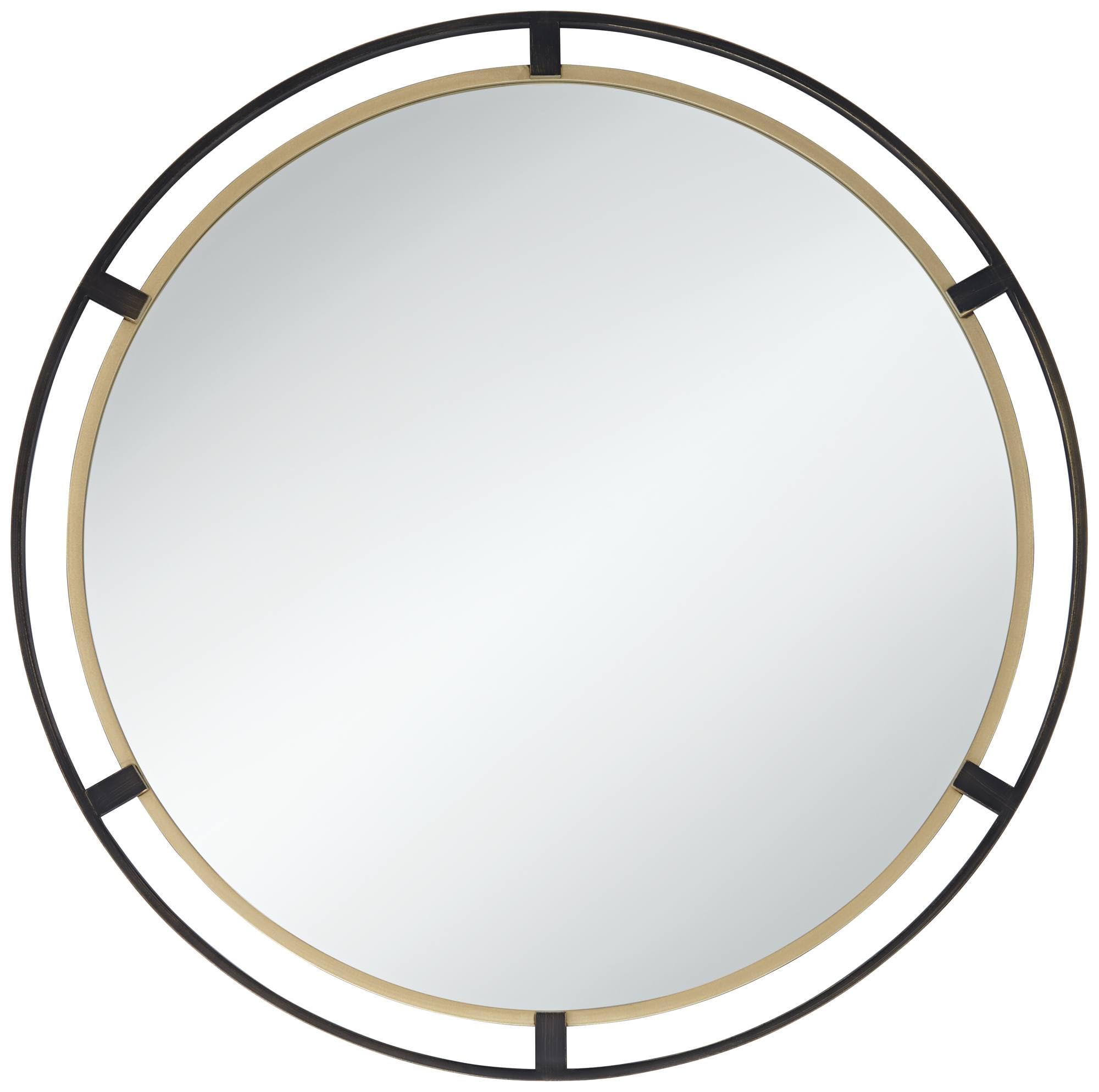 Outer Ring: Aged Bronze Finish; Inner Ring: Antique Gold Finish. Metal frame construction. No beveled glass.